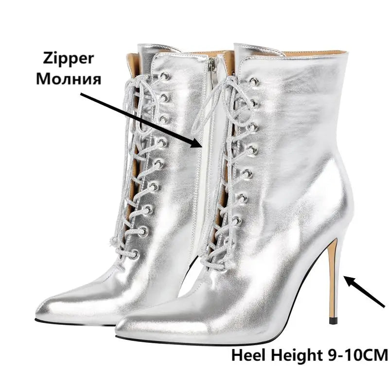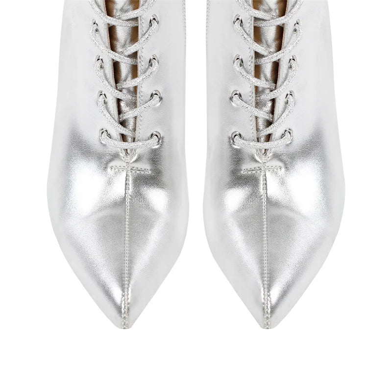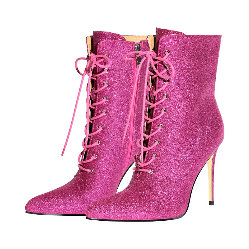 🔥 Lace Up, Zip Up, Glam Up: Effortlessly elevate your ensemble with a lace-up design that adds a hint of sensuality, perfectly complemented by a side zipper for quick, glamorous entrances. Our stiletto booties are not just shoes; they're a ceremony of transformation.