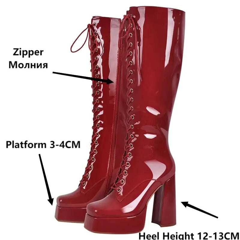 Strut & Slay: Glamazon Diva Square Toe Platform Knee High Boots