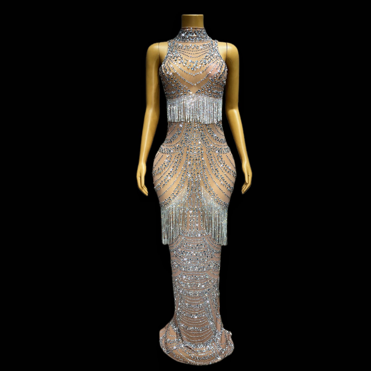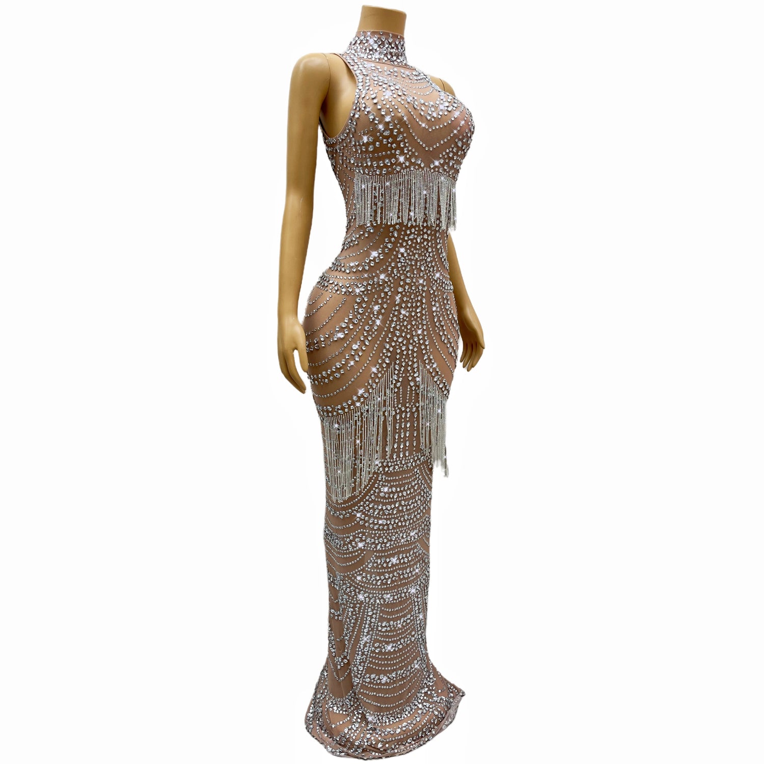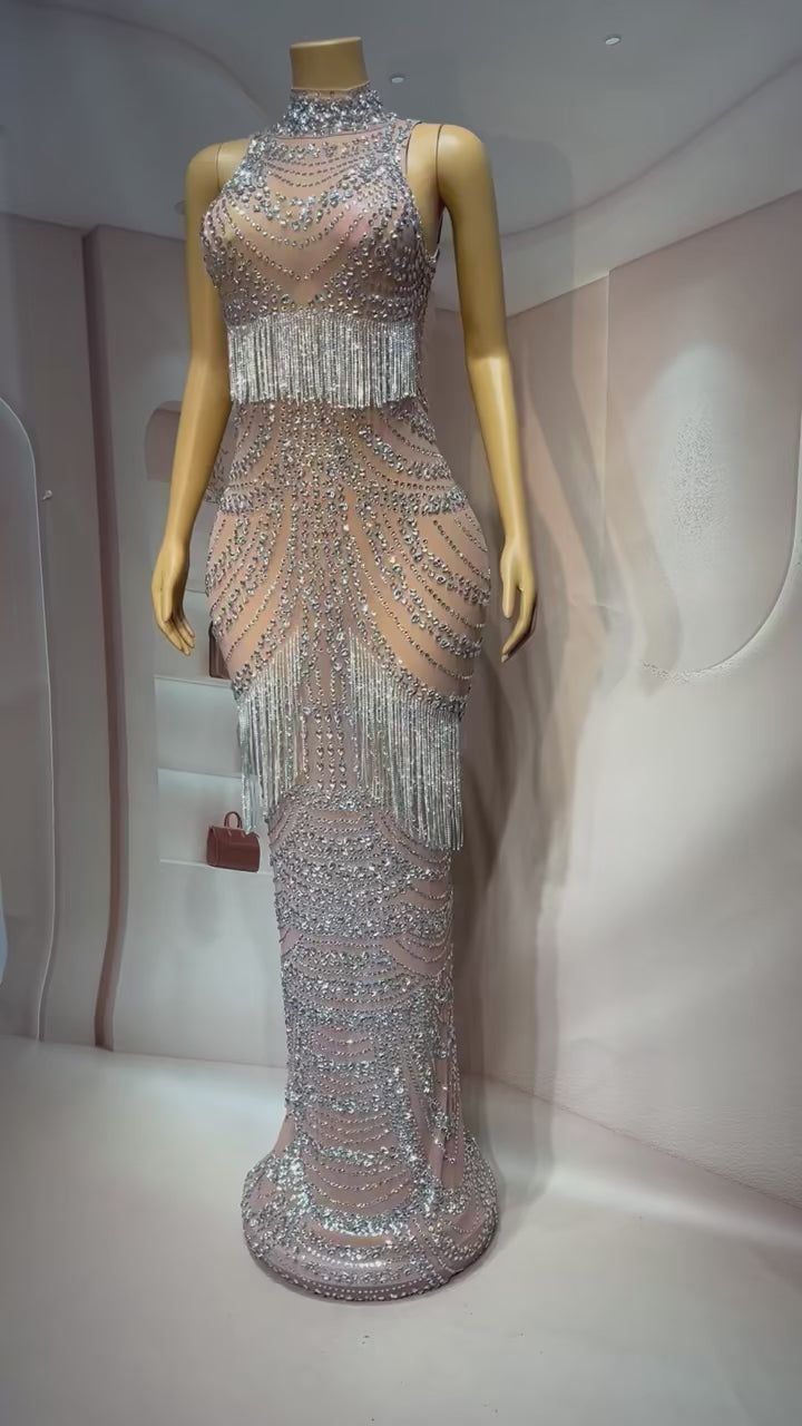 Get ready to slay the scene and unleash your inner diva with our Luxurious Crystals Fringes Rhinestones Stretch Dress. Because when it comes to style, darling, there's no such thing as too much sparkle!