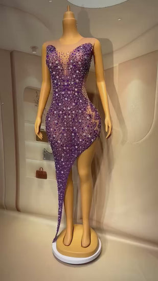 Spill the Royal Tea, Not Your Dress: The Purple Rhinestone Wrap Split Dress