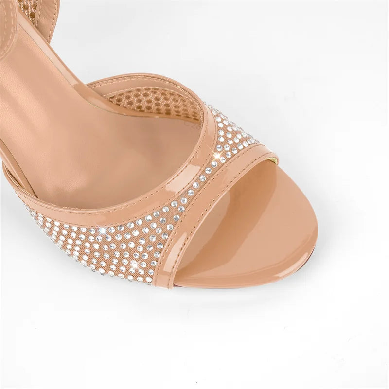 Shine under the spotlight in these crystal-embellished stiletto sandals. Designed for performers who demand glamour, these rhinestone-studded heels feature a 10cm stiletto and slingback design that delivers red-carpet elegance for weddings, performances, and high-impact events.