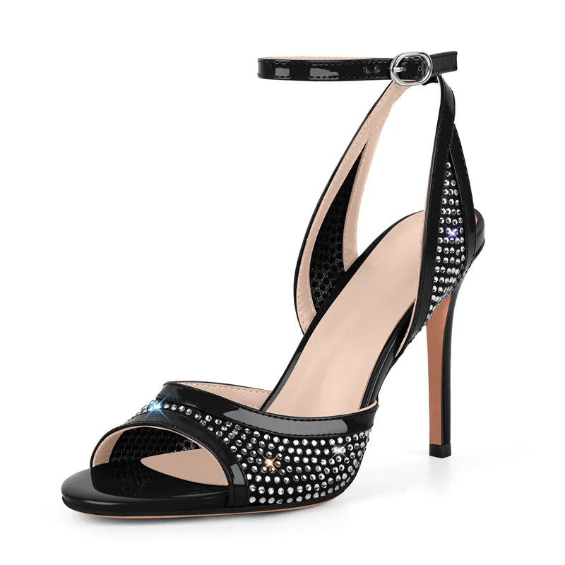 Rhinestone Crystal Ankle Strap Stiletto Sandals - Slingback Heels