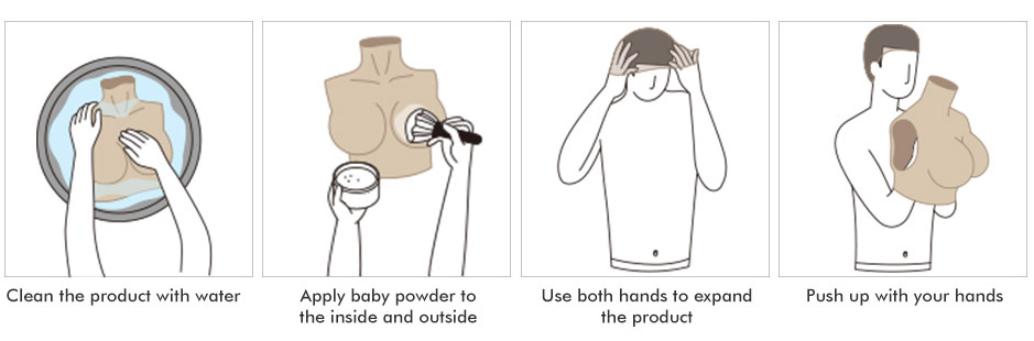 These breast forms are made of top-quality silicone material. It's highly stretchable, and identical in appearance to real skin. As for the fillings, two options are available. The elastic cotton is light in weight, allowing for longer periods of use while providing realistic stuffing. The silicone gel, on the other hand, is heavier, but much more realistic as it responds to gravity as real breasts would.