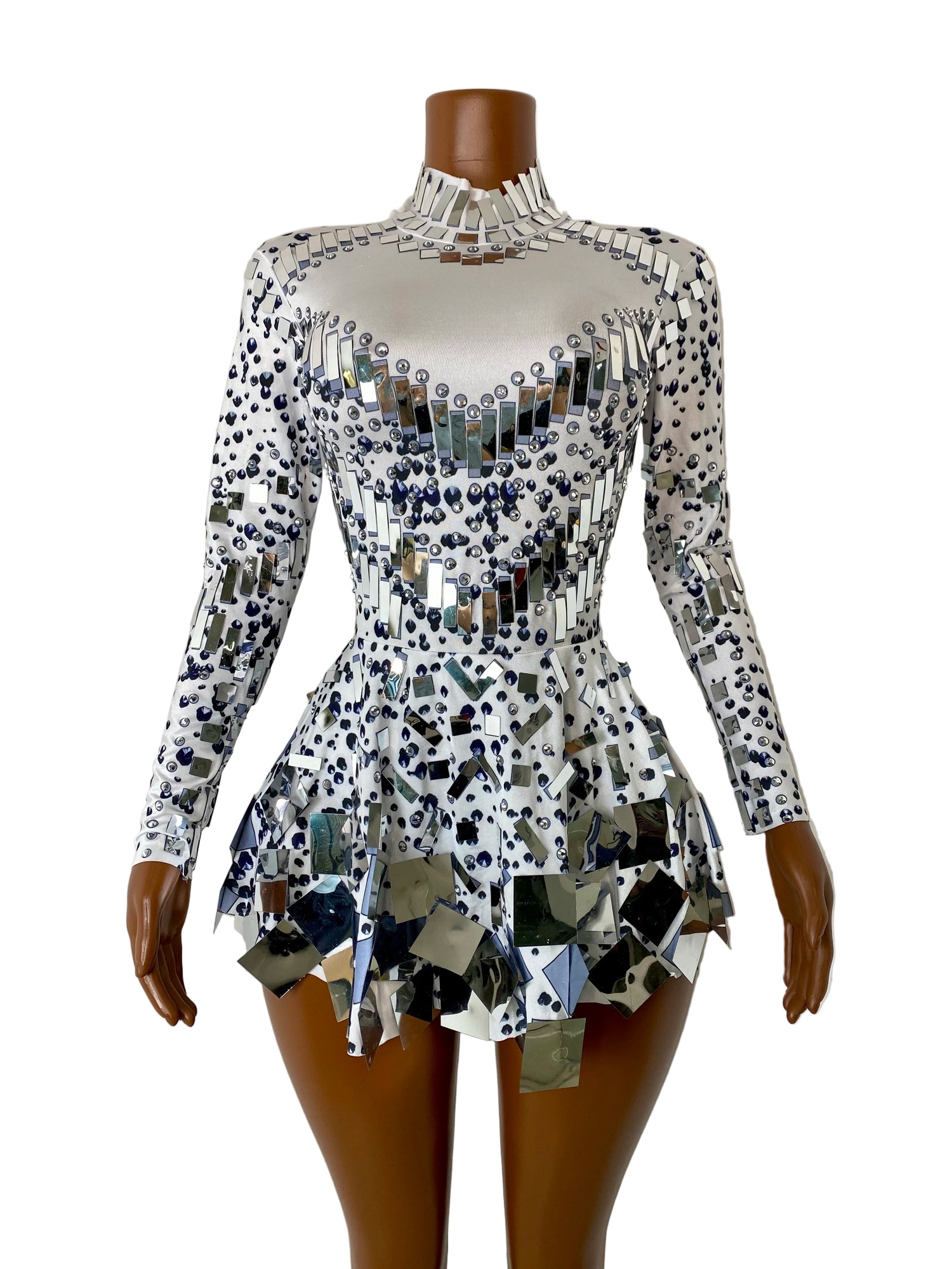Dazzling Disco Queen Mirror Shard Bodysuit Dress