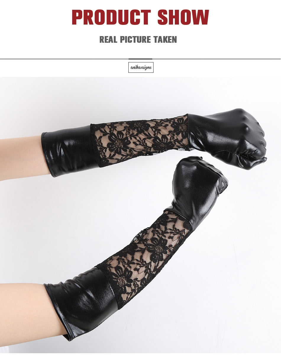 Long Leather & Lace Gloves