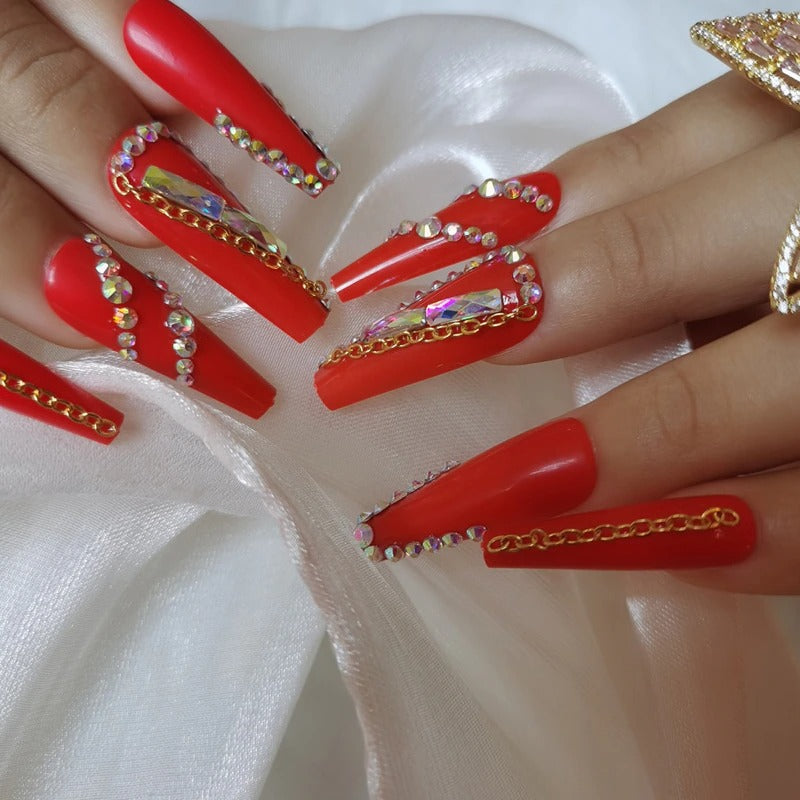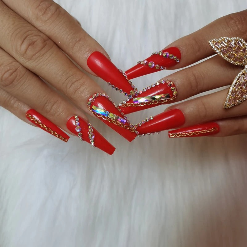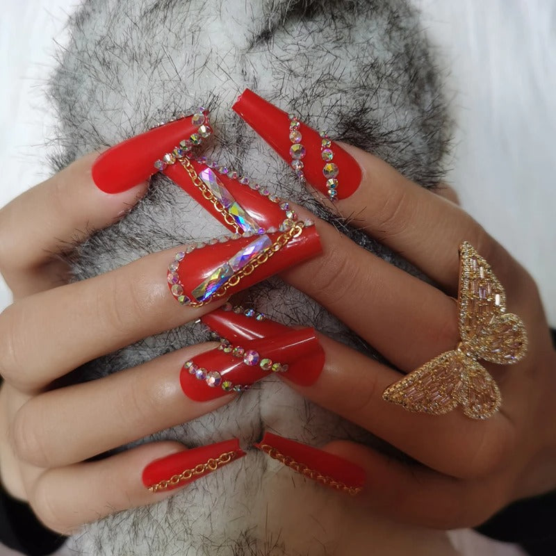 What's a Queen without glamorous nails? These luxurious press on nails will beautify and feminize your hands for the perfect drag look!