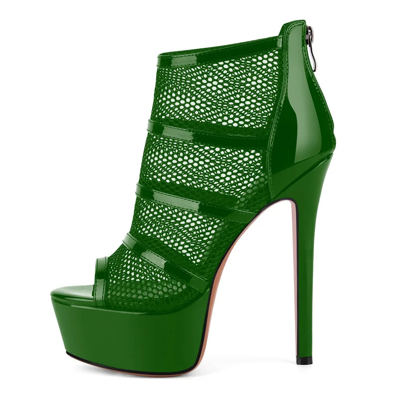 Mesh Peep Toe Platform Ankle Boots - Back Zipper Stiletto Heels