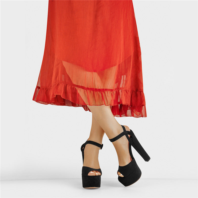 Get ready to look fierce with these sexy platform sandals, perfect for adding elegance and style to your drag look!