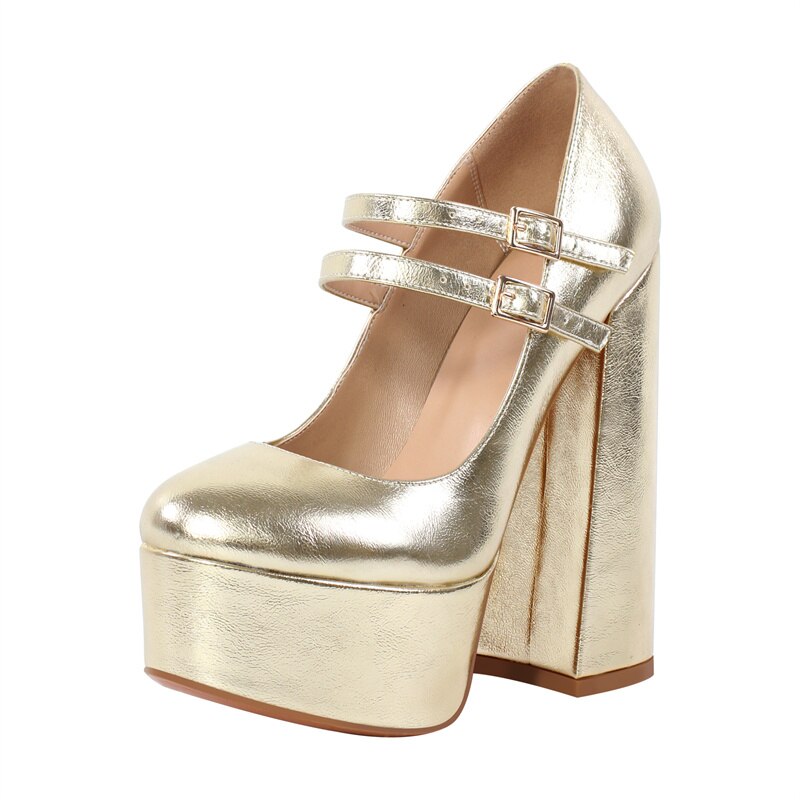 Show the world you mean business with these fierce Chunky Mary-Jane Platform Pumps! Perfect for drag queens looking for an extra edge on the stage, the daring 16CM high heels and ankle strap provide support with plenty of style to boot. Sparkle in the gold chunky platform and be the star at any dress party! Yaaas!