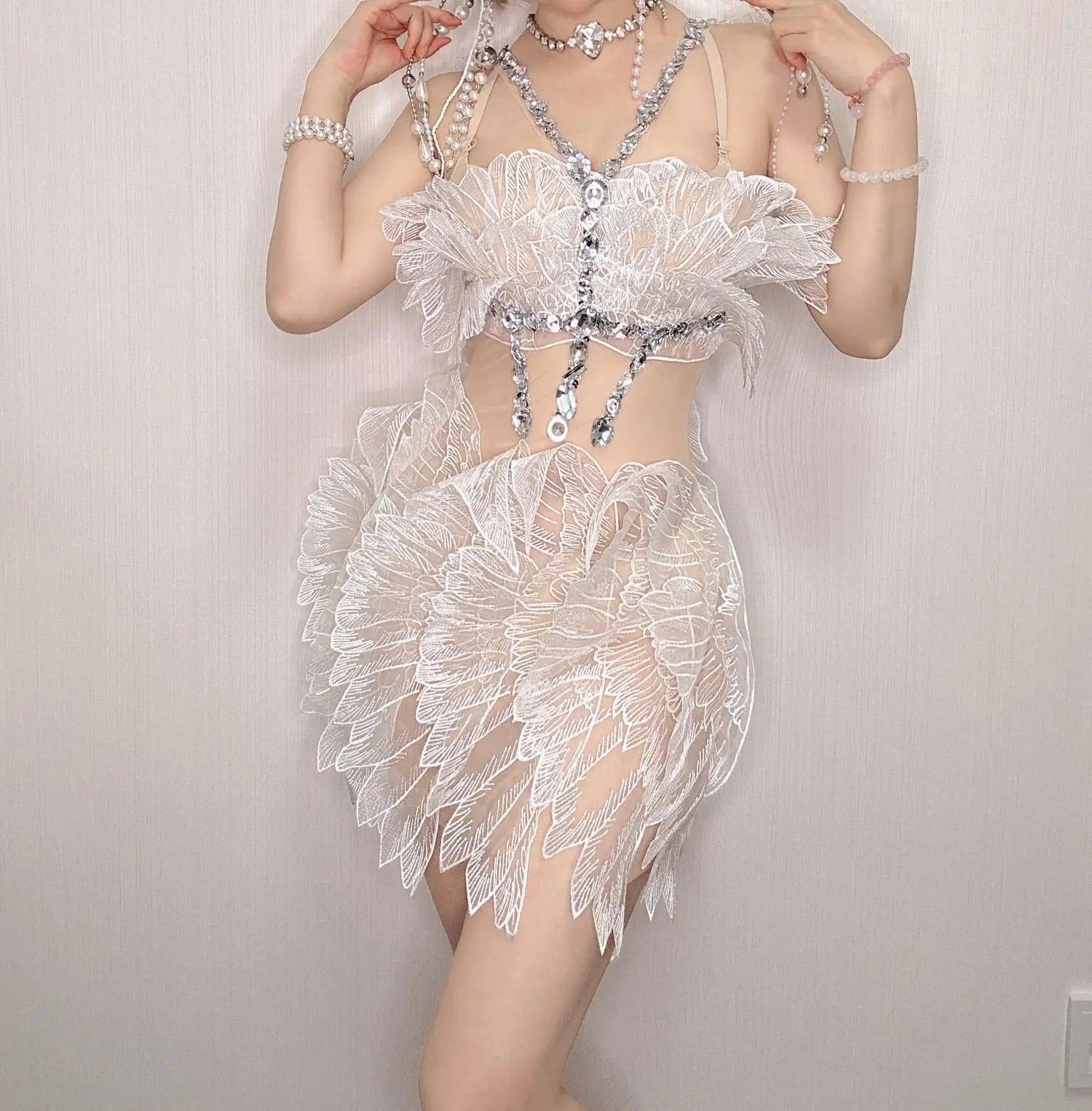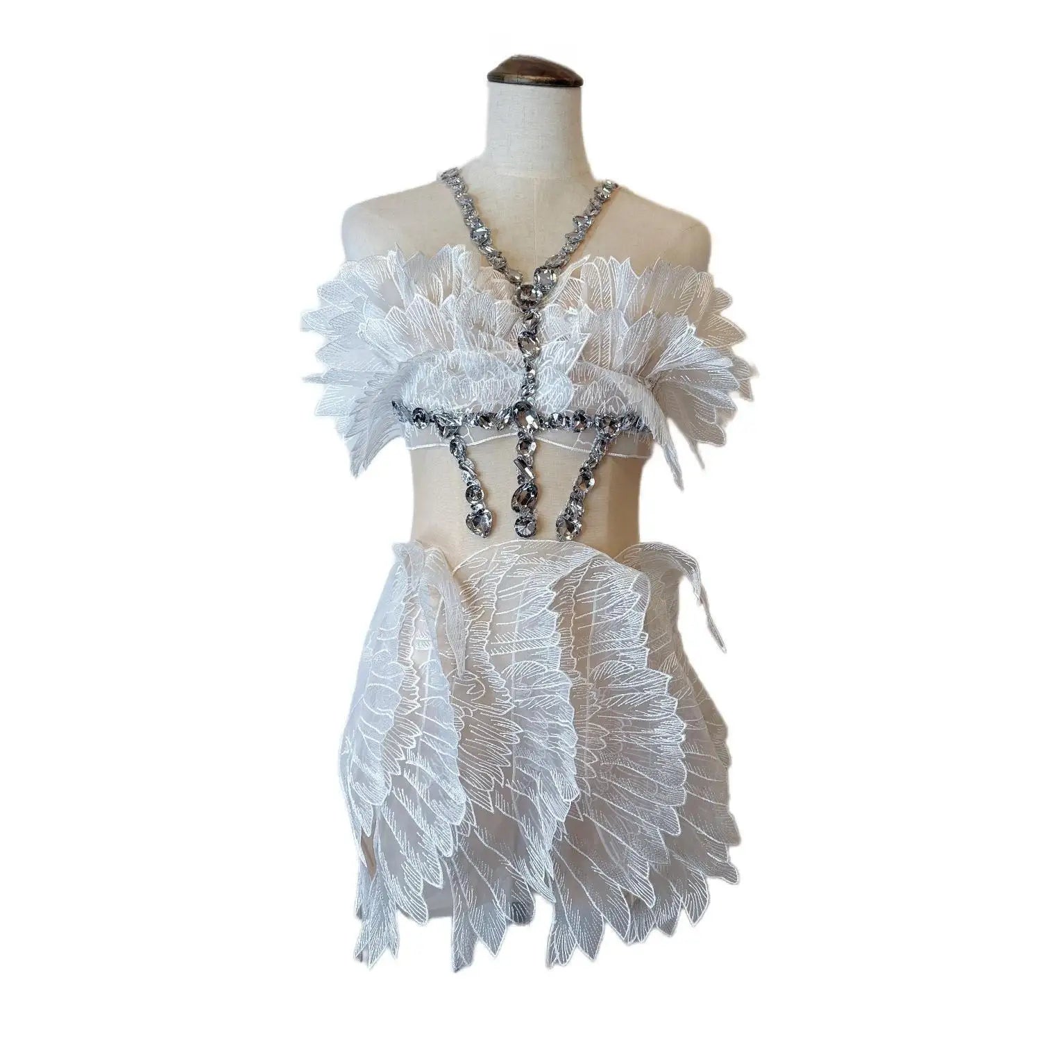 Werk it from runway to brunch with the Crystal Wings Mini Dress!