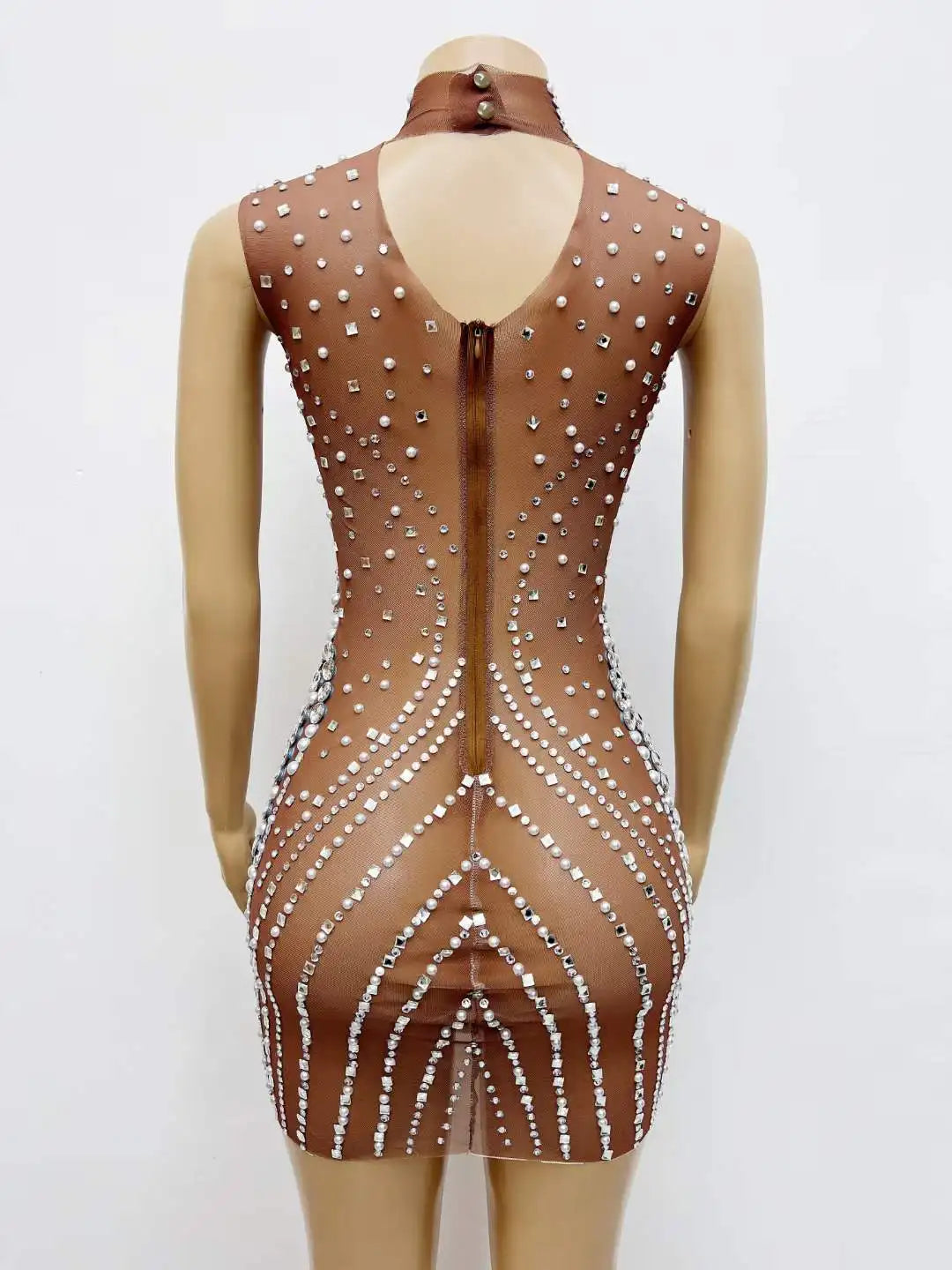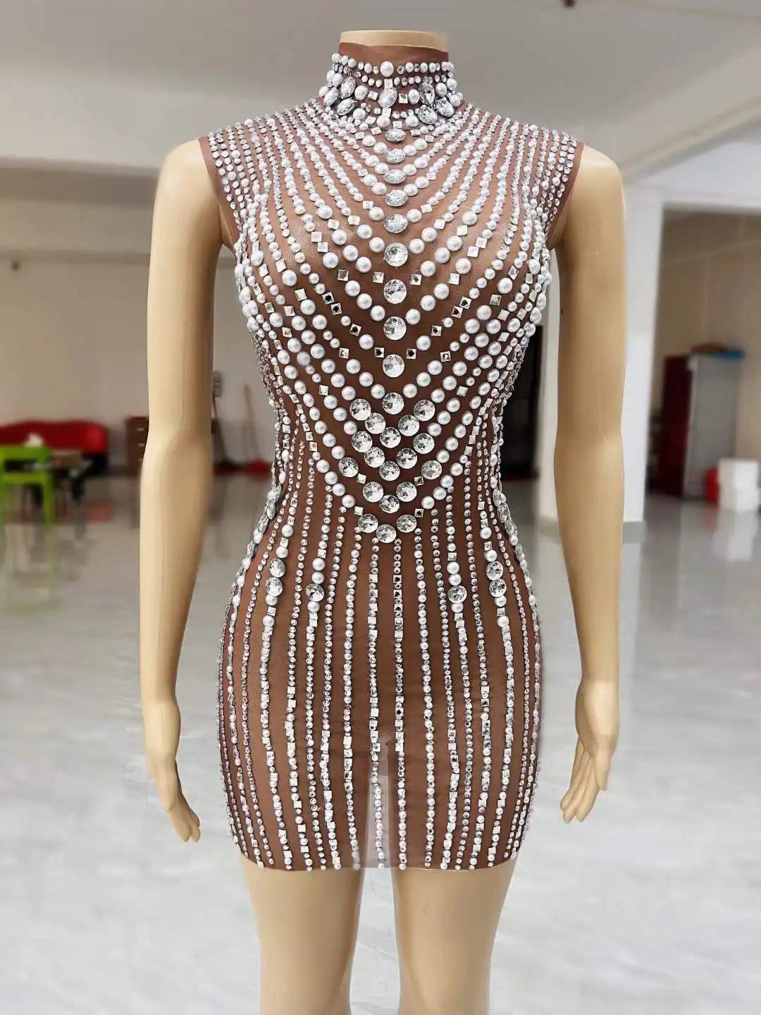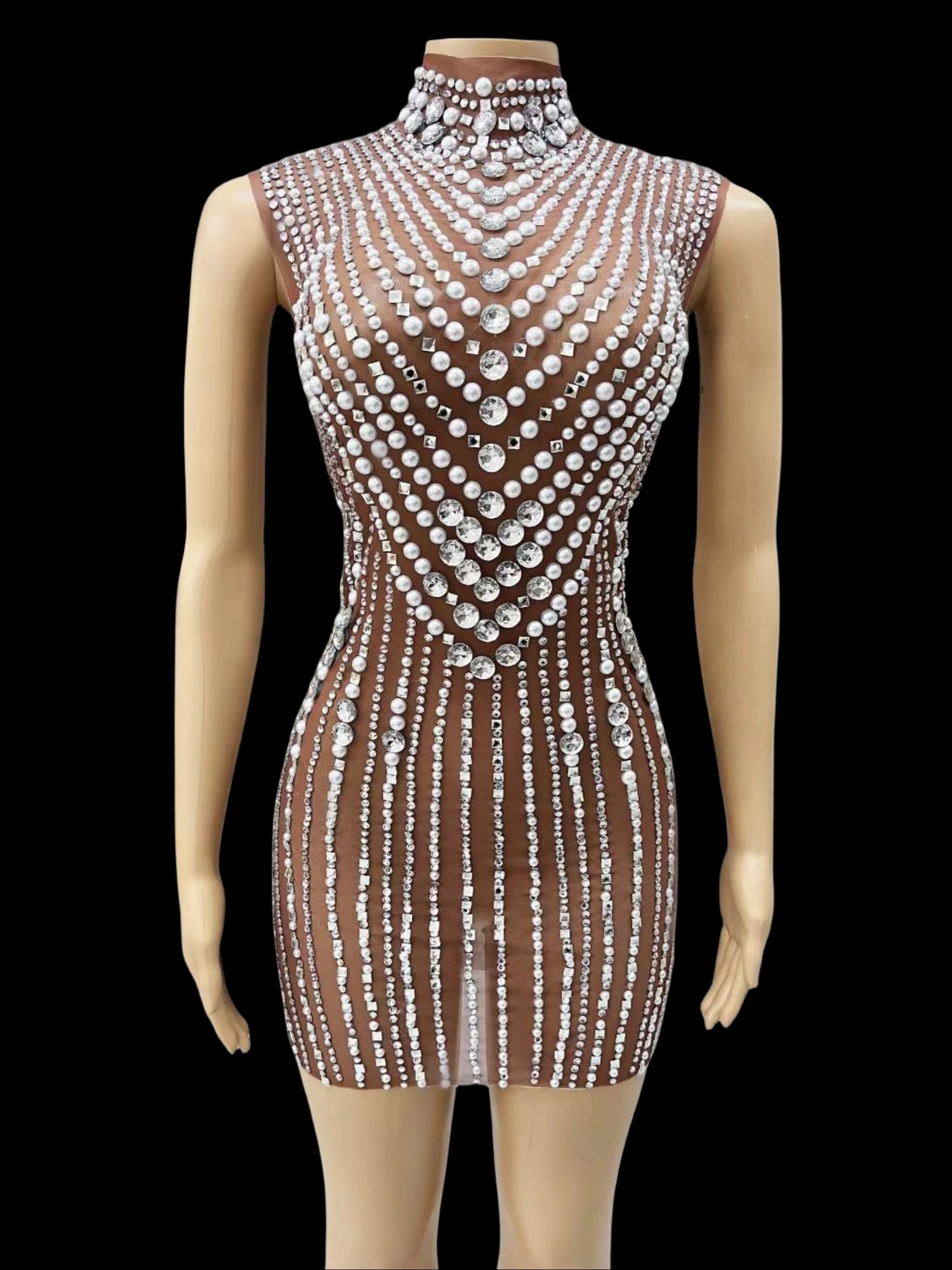 Glamorous Sheer Drag Queen Mini Dress - Sparkle and Shine on Stage!
