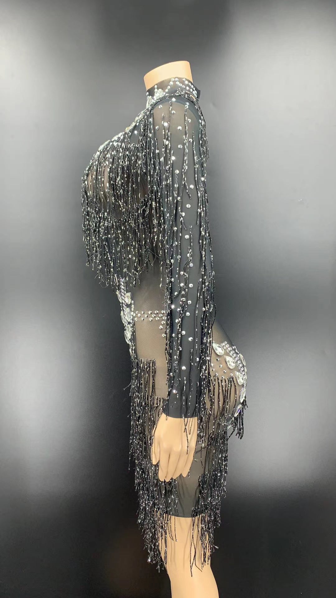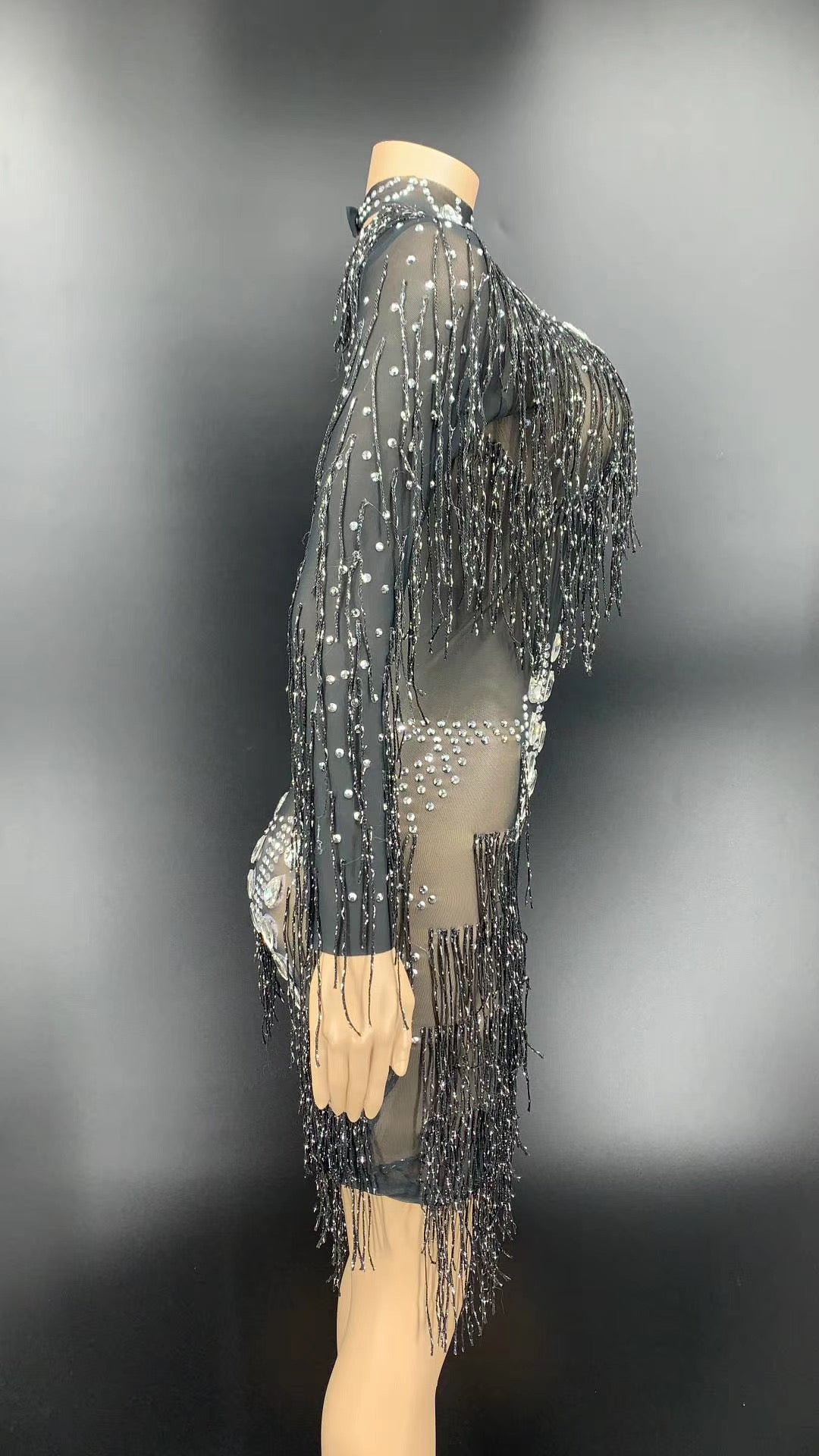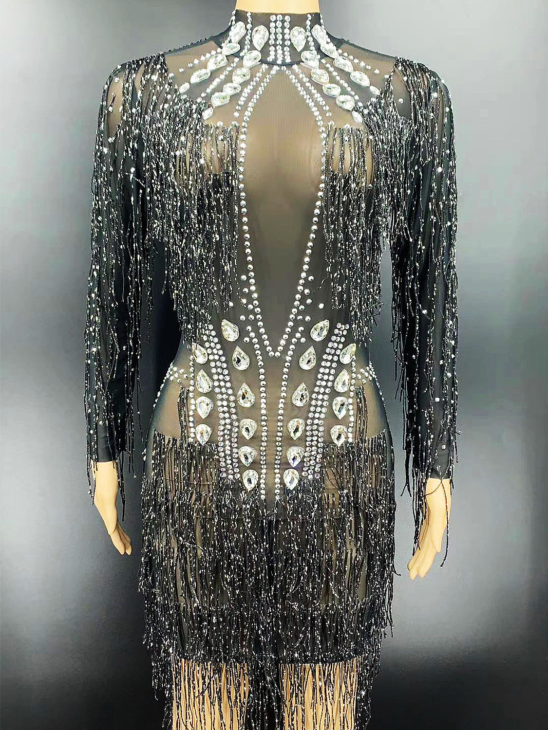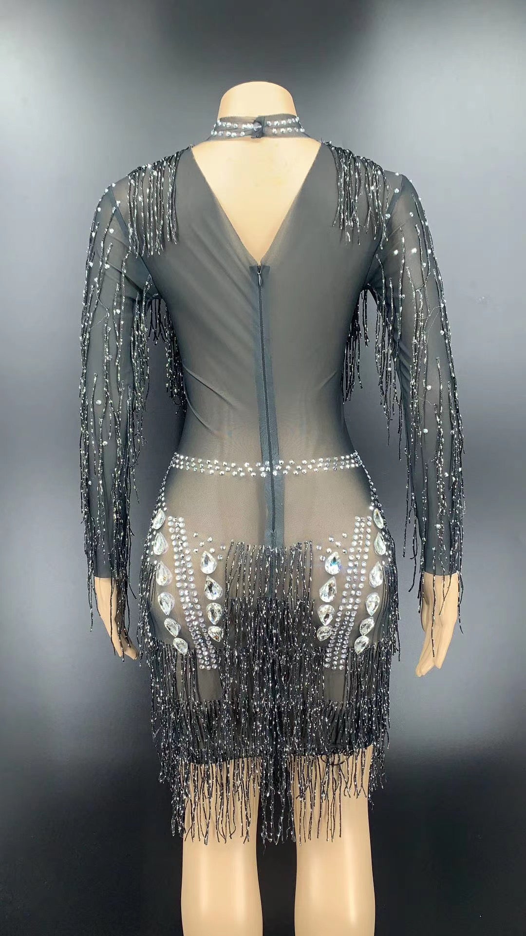 Kimora Black Crystal Tassel Dress