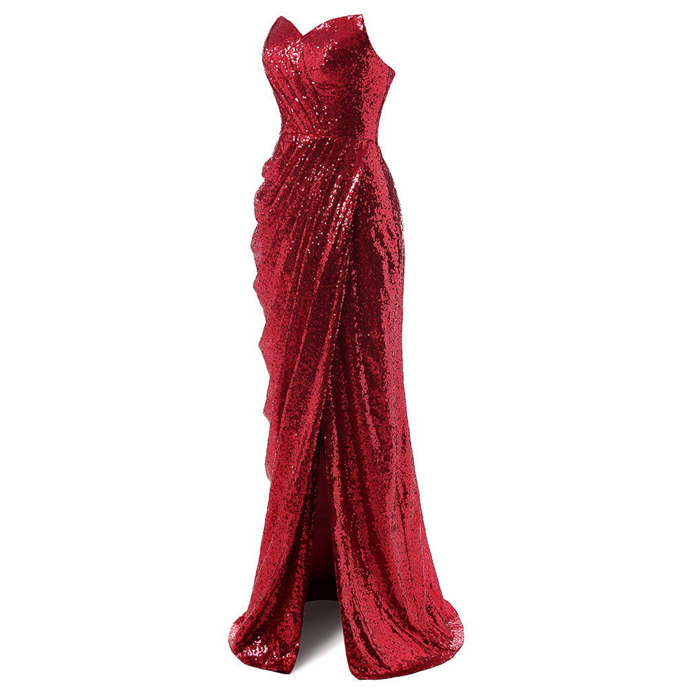 Take your drag style to the next level with this gorgeous strapless sequins dress that will make you look sensually fierce, graceful and beautiful.
