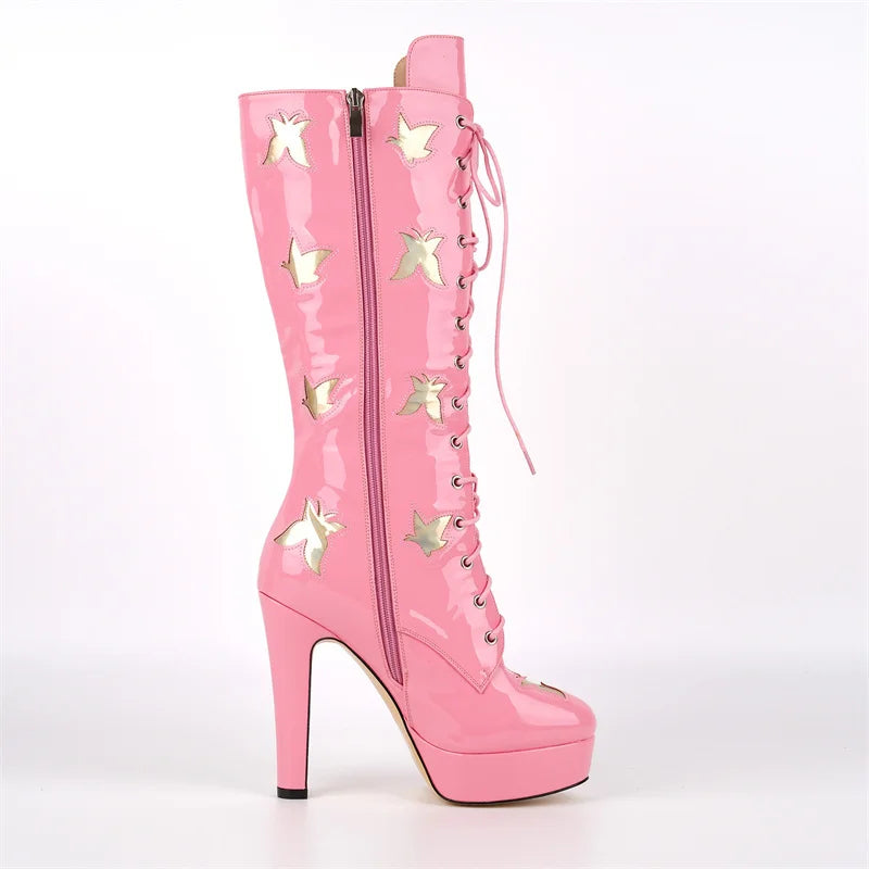 These boots are your statement piece for bold, high-fashion moments—editorial shoots, performances, street style, and content creation. The patent finish and lace-up detailing photograph beautifully and work across aesthetics from western glam to modern punk. Pair with mini skirts, bodycon dresses, or oversized separates for maximum impact.