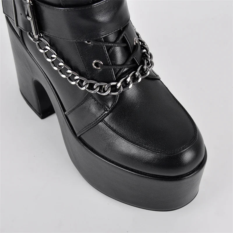 Punk Perfection: Platform Ankle Boots with Metal Chain Detail