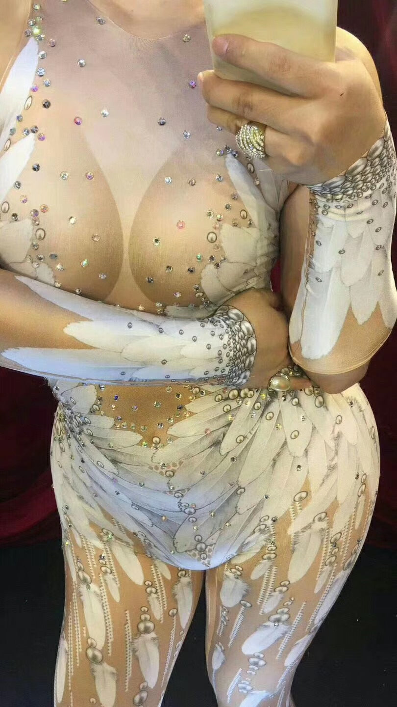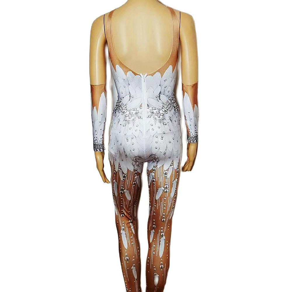 Take your drag style to the next level with this gorgeous rhinestone jumpsuit that will make you look sensually fierce, graceful and beautiful.